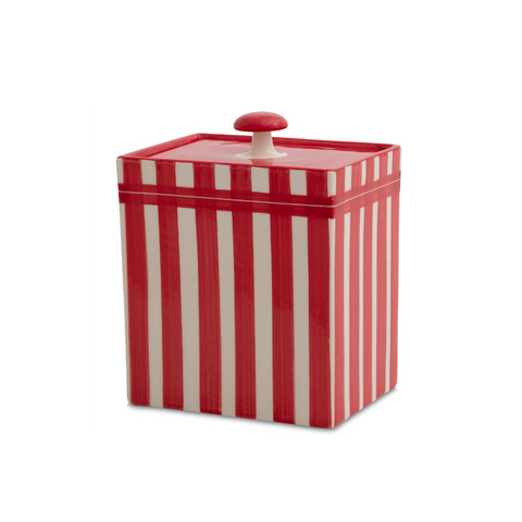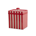 The cookie tin by Hedwig Bollhagen from 1977 has become a classic. A very simple cubic shape - yet not so easy to manufacture - with a mushroom-shaped knob. It has been available for decades in many different solid color variations as well as with a sgraffito design by Hedwig Bollhagen.
