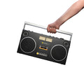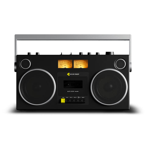 ブラッシュドアルミニウムなどの高品質素材で作られており、耐久性と現代的な美学を兼ね備えています。ウーファー、ツイーター、カセットレコーダー、VUメーター、折りたたみハンドルなど、当時のブームボックスのクラシックな特徴をすべて備えた長方形のデザインです。