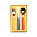 끝이 약간 둥근 칼, 음식을 집기에 이상적인 넓은 포크, 그리고 모든 용도에 실용적인 숟가락으로 구성되어 있습니다. 세트는 색상으로 구분되어 있으며, 어린 아이들이 쉽게 인식할 수 있도록 아세탈 수지 손잡이가 달려 있습니다.