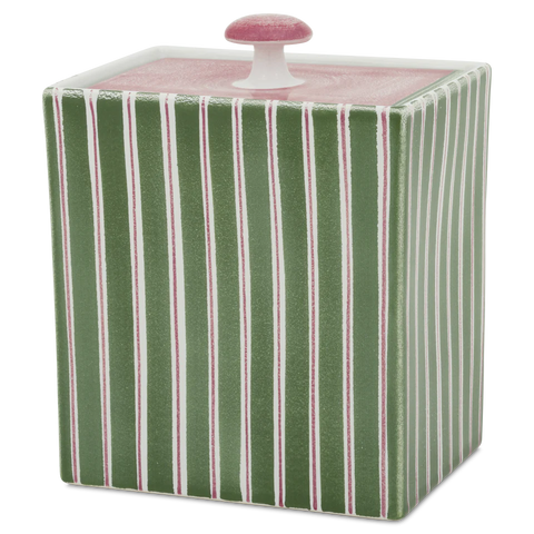 Keksdose HB 870 | Fayence gestreift | Weiß-Rot-Grün | Glasur glänzend